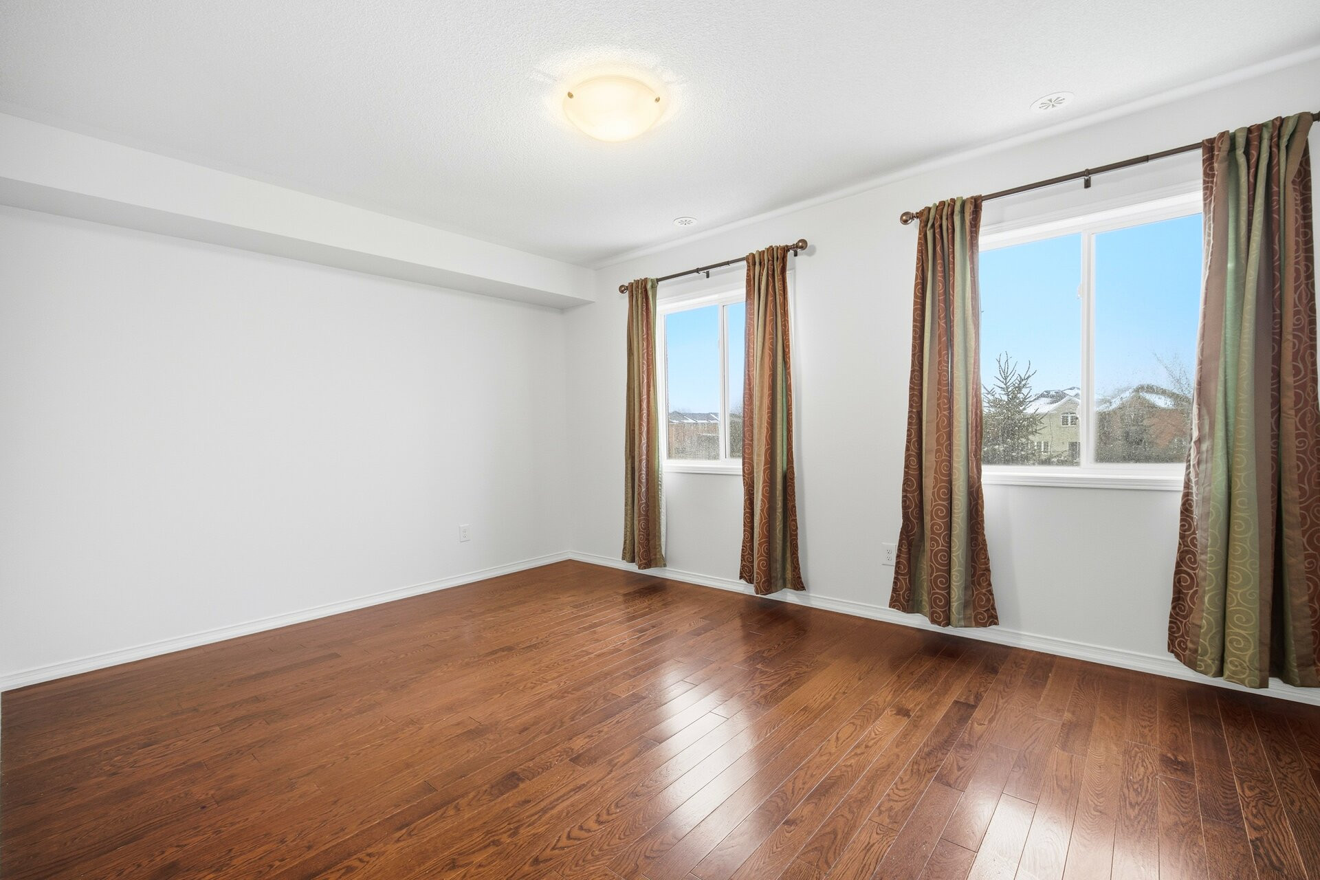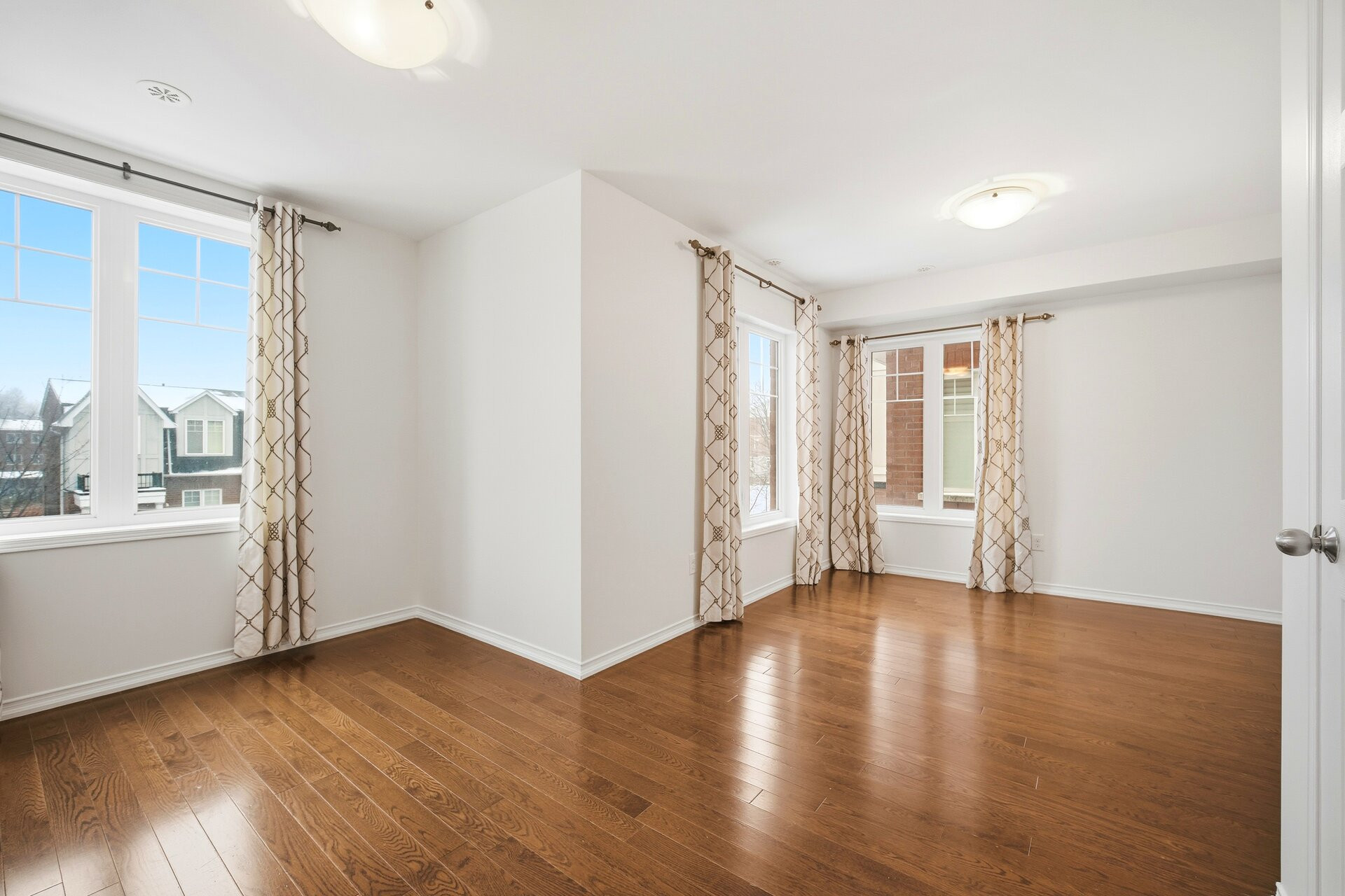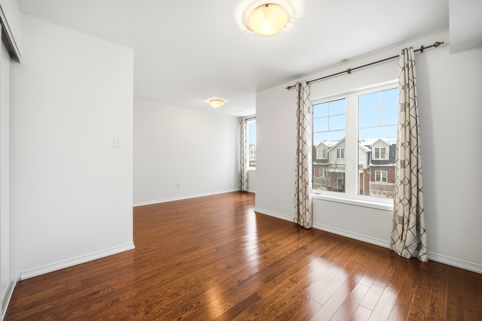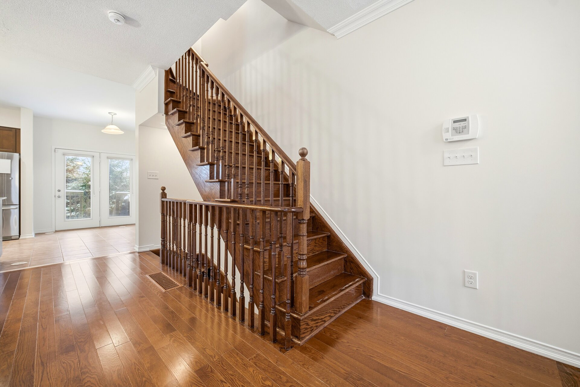 Welcome to this rare end-unit, 3-storey freehold townhome backing onto a private ravine-offering space, privacy, and exceptional natural light. Totalling approximately 2,125 sq. ft., including the finished lower level, this thoughtfully designed home features 3 bedrooms, 3 bathrooms, quality hardwood throughout, and a highly functional layout ideal for modern living. The main living level showcases a gas fireplace, a spacious eat-in kitchen with ample storage, quality appliances, and large windows – being an end-unit, they fill the home with natural light and ravine views. The third-floor primary retreat is impressively sized, complete with a custom walk-in closet and a 5-piece ensuite.